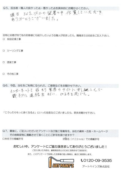 連日、36℃以上の猛暑の中作業していただき、ありがとうございました。